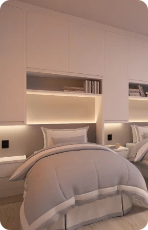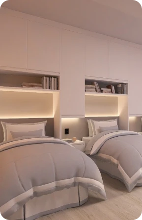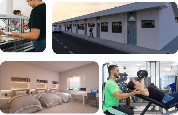 Espaços completos para estudo, lazer e bem-estar, com infraestrutura moderna, áreas esportivas e ambientes de convivência projetados para sua melhor experiência.